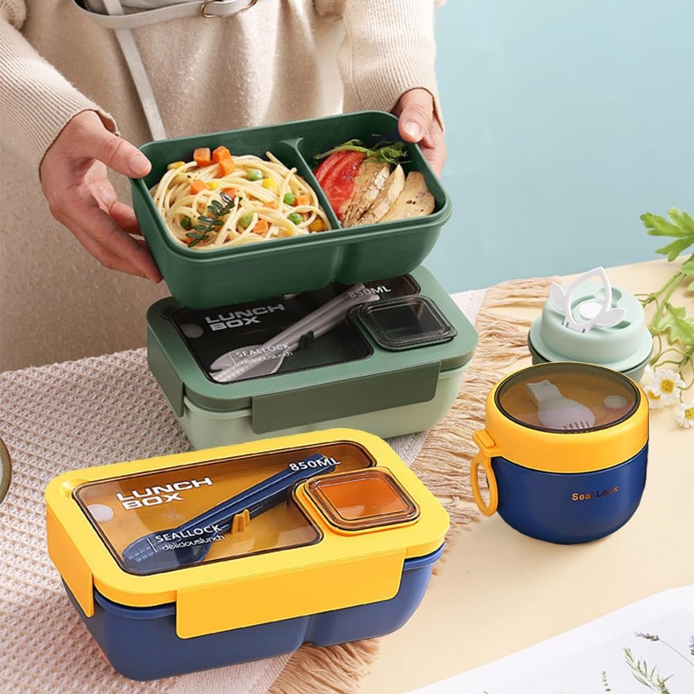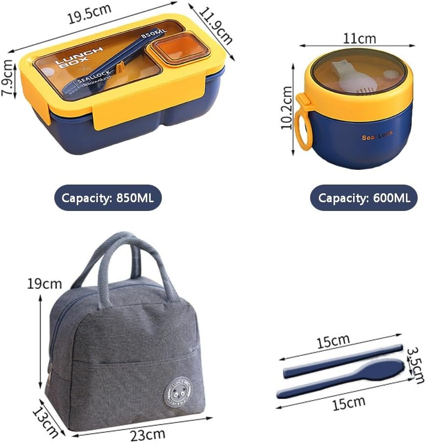 Bento box for adults lunch boxes set with lunch bag utensils oat container durable leak proof lunch box with fork and spoon food storage box for men women students school office.